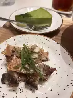 The fish is golden and crispy, full of savory flavor, a perfect match with alcohol.