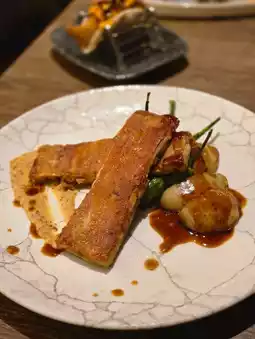 Spanish ham and cheese, cod tartare, and foie gras. The foie gras is crispy, paired with balsamic vinegar and mixed berries, balancing the richness of the foie gras. The fish fillet Mexican quesadilla combines multiple flavors, with Mexican smoked chili sauce and pickled red onions, fresh and crispy.
