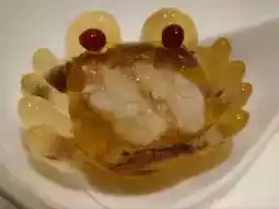 The translucent jelly wraps strands of sweet and fresh crab meat.🦀