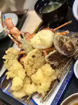 Fresh Australian lobster is made to order and very appealingðĶ, with rich umami flavor. The frying is just right, with a crispy exterior and tender, springy meat inside. Highly recommend the shiitake mushroom tempuraððŦâthe thick shiitake mushrooms are flavorful and juicy. The pumpkin is fragrant, sweet, and softð, and the lotus root is fried to a crispy textureð. Paired with warm soba noodles that are refreshing and smooth, topped with scallions and crispy tempura bits for a richer taste.