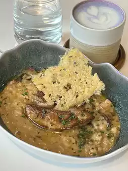 A delightful surprise, with two large pieces of double-layer foie gras, pan-seared to a crispy outside and tender inside, bursting with rich aroma, giving a high-end French fine dining feel. The smooth foie gras combined with every bite of truffle mushroom rice is full of fragrant aroma!