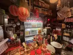 Walking further in, you’ll find a small shop marked as "Seven Kee Ice Room." The interior decoration resembles the ice room in the movie, with old illustrated magazines on the walls, a counter filled with nostalgic canned goods and sundries, and even a fish tank with a big fish and many colorful decorations, full of fun! We can pretend to sit and eat the char siu rice from the movie, experiencing the feeling of being the boss.