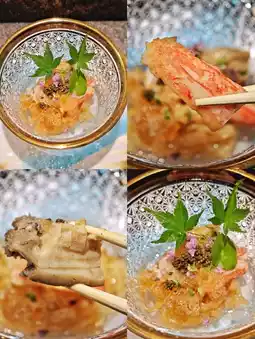 The appetizer of Matsuba crab leg meat π paired with abalone looked exquisite. π¦ The Matsuba crab leg meat was explosively fresh and sweet π₯, combined with the chewy abalone, π doubling the umami, instantly waking up my appetite π€€!