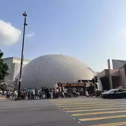 Right by Victoria Harbour, it’s easy to spot — just look for the iconic half-sphere dome! 🌐