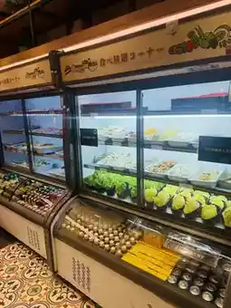 You can order via QR code📱. Besides the original flavor, each meat option also comes with choices like sukiyaki sauce, Korean spicy sauce, and other seasonings😗. Besides various meats, there are seafood🦞, skewers, fried appetizers, main dishes🍚, and more. I personally recommend ordering the chicken bubble fish dry snack😋. Outside, there is a self-service area with cooked food🌮, hotpot ingredients🥬, drinks🍹, desserts🍰, and an ice cream freezer. The durian ice cream🍦 and ice cream mochi are also quite good😋.