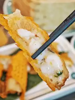 Tai O Shrimp Paste Fresh Squid Roll is fried to golden crispiness, the salty aroma of shrimp paste combined with the fresh taste of squid is so delicious you can’t stop eating!