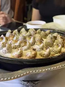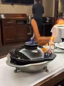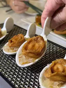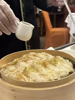 Sea whelks are baked in a clay pot with sea salt and then flambéed with Shaoxing wine. Once the lid is lifted, the rich aroma of wine fills the air. The sea whelks are savory, fresh, and delightfully chewy.