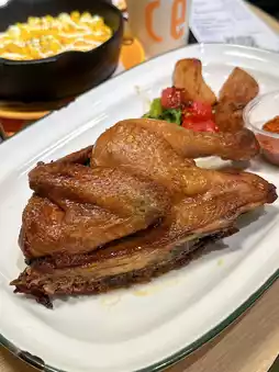 The roast chicken is outstanding 😍. The aroma hits you as soon as it's served! Tearing it apart by hand reveals juicy meat, with crispy skin and tender flesh. Adding spicy powder makes it even more flavorful 😋