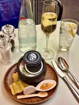 Eat a whole box of caviar directly at the American Express Lounge
