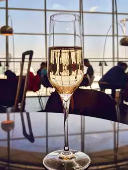 Unlimited premium champagne, red and white wine, and Evian mineral water to drink!