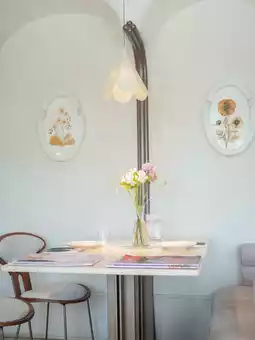 The whole shop is decorated with floral art + ethereal plating, perfect for Instagram!