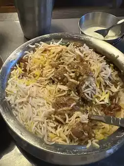 Lamb baked rice, but not just simple baked rice. The chef uses long-grain fragrant rice from Hyderabad, India, which has a texture similar to premium Thai jasmine rice—soft yet infused with unique Indian spices. The lamb enhances the quality, making it an excellent South Indian main dish.