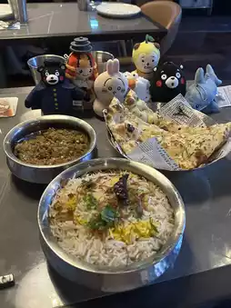 Crisp and well-baked garlic naan, with a rich charcoal-grilled flavor. Dipping it into the eggplant curry sauce adds another layer of taste.