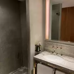 Next, headed to Cathay Pacific First Class Lounges The Pier & The Wing, truly the industry champion! The pan-seared fish fillet is crispy outside and tender inside, paired with pink champagne and the signature Cathay Delight, a soul-satisfying bite~ After dining, rushed to the five-star shower room 🚿 A hot shower washed away all fatigue! Lying flat while waiting for the flight is just too comfortable, turning waiting into a vacation!