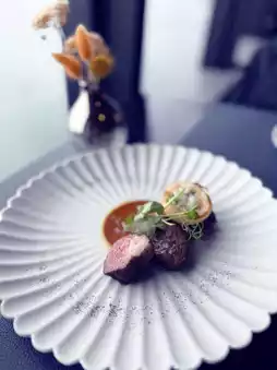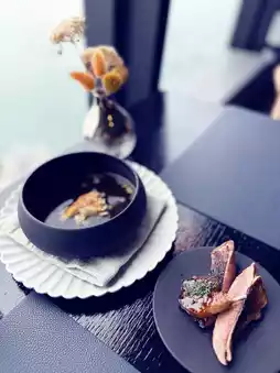 The half-cooked French oyster is thick, meaty, and plump, topped with garlic butter and chives. At the bottom is a sauce made from tapioca and cassava starch, paired with precious Chinese caviar. The presentation is elegant and beautiful, and the taste is excellent.