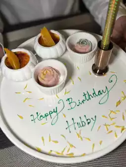 Finally, of course, was the surprise dessert. The dessert even had a birthday message stand, and the candle was very unique. The whole experience was full of surprises and ceremony from start to finish.