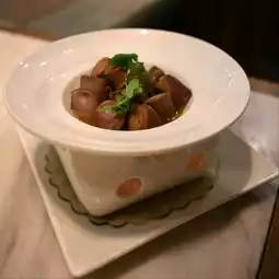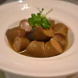 Well-marinated pork intestines with rich layers and a tender, springy texture, paired with a flavorful sauce. The dish is soft and smooth, garnished with fresh cilantro on the side for added fragrance 😚