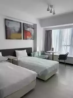 Highly recommend the "Sea View Suite"! Although it’s a studio, the "living room has two beds + bedroom has a large bed," comfortably fitting 3-4 people~The living room and bedroom both have "floor-to-ceiling windows facing the sea": high-floor views with "unobstructed sight of the blue sea horizon stretching to the sky" (Photo 2 includes "real shot from high floor," clouds look like they’re floating on the sea~)~