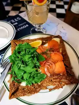🫓 Smoked Salmon Buckwheat Pancake: Buckwheat is slightly crispy and chewy, smoked salmon is oily and savory, paired with garlic cream cheese for a rich yet fresh herbal flavor.
