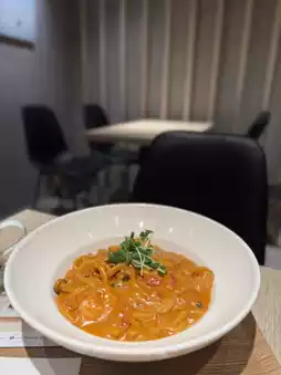 As for the shrimp tomato soy milk udon, the tomato broth is rich and smooth with the aroma of soy milk, combined with sweet fresh shrimp, resulting in a harmonious taste. Tossing the udon in the sauce made us eat a lot without realizing it 🥴