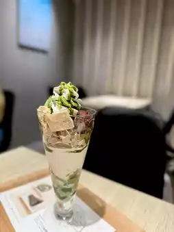 Regarding desserts, both parfaits come in large cups. The matcha warabi mochi parfait has chewy warabi mochi and a strong matcha flavor, combined with other ingredients for a rich texture; the roasted tea shiratama parfait features soft shiratama and a mellow roasted tea flavor, with a well-balanced overall taste.