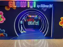 Glow It!, as the first glow-in-the-dark slime store, brings a brand-new and exciting sensory journey. Inside, dazzling green transparent chairs and the glowing wall with "Get Set, Throw and Glow" create a dreamy atmosphere. Pick up glow paint and unleash your creativity under UV light, with colors emitting magical glows in the dark, turning photo moments into works of art! This is not only a great way for party activities or creative expression but also a perfect way to relax after a long day. The "GLOW IT! by Slime it!" archway at the entrance feels like a gateway to a magical world!
