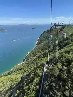 The cable car offers a breathtaking view of the beautiful sea from above.