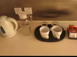 The hotel does not provide bottled water ๐ฑ but there is an electric kettle and teacups โ There is a water dispenser in the corridor ๐ฐ and coffee and tea bags are provided โ๐ต