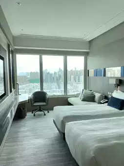 My room was spacious and well-appointed, with traditional decor and large windows that framed panoramic views of Victoria Harbour. Waking up to the shimmering waters and iconic Hong Kong skyline was an experience in itself. The room featured all the expected comforts—from a plush bed to a marble bathroom with a deep soaking tub, perfect for relaxing after a day in the city.