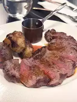 The Black Angus striploin steak was ordered medium (medium rare), the steak arrived pink, with a rich meaty flavor, texture similar to medium-well.
