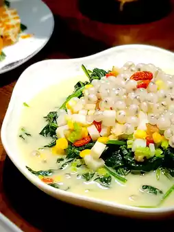 Also, the seemingly simple but extraordinary superior soup spinach, combined with corn, goji berries, and Italian pearl barley, is very sweet and refreshing!