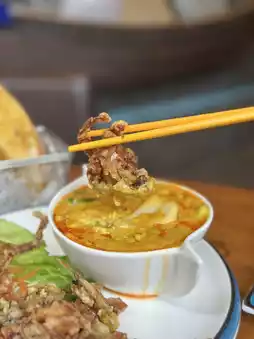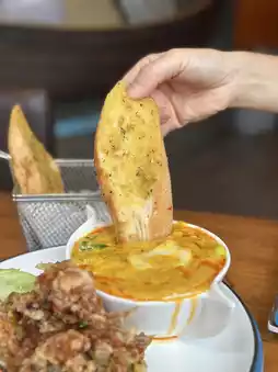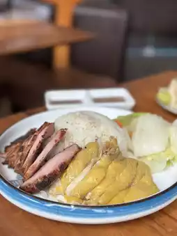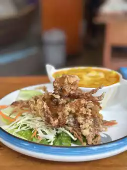Kowloon City’s Thai food truly lives up to its reputation👍🏻 Today’s visit to this place was definitely a great deal with generous portions! Lunch sets range from $75-129, prices are reasonable, but the portion sizes are surprisingly large! The flavorful pork neck paired with boneless Hainanese chicken rice was so much food it felt like two plates combined. The curry soft-shell crab was eye-catching🤩 The soft-shell crab was large and crispy, with a rich coconut curry flavor so abundant it almost overflowed. Paired with garlic bread, it was absolutely delicious. Speaking of garlic bread, it was also amazing—super big pieces with strong garlic aroma and crispy texture👍🏻
