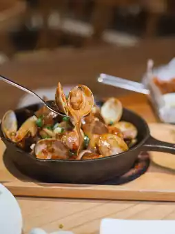 The clams are fresh and sweet with no sand. The sauce is thick, made with Korean chili paste and kimchi 🌶️ Each clam is coated with the sauce. It’s spicy but very flavorful 😋 For those who love spicy food, it’s very satisfying 🥵