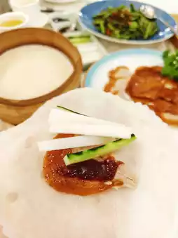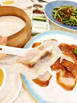 The duck skin is richly colored and glossy, crispy and fragrant, and the pancake is thin enough. The rich aroma bursts out~