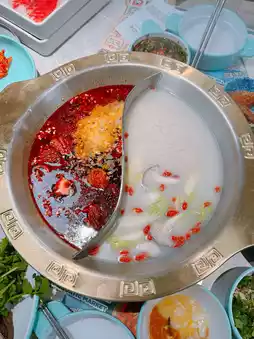 Yin Yang pot ๐ฒ add-on $48 ๐ฐ Chose the special spicy mala pot and nourishing pork bone pot ๐ถ๏ธ๐ The mala pot has a perfect balance of numbing, spicy, and fragrant flavors, very stimulating ๐ฌ The pork bone pot is moderately salty and tasty ๐๐ป
