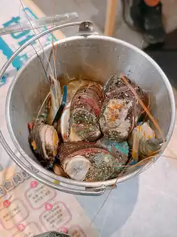 Seafood ๐ set includes ๐ฐ fresh oysters ๐ฆช abalone, US clams ๐บ๐ธ, sand clams, blood cockles, prawns, grass prawns, big head prawns ๐ฆ three-spot crabs, blue flower crabs ๐ฆ crispy carp slices, sand mullet fish ๐ fish maw, scallops, sea snail slices, flower snails ๐ The oysters are plump and large ๐ฑ with smooth and tender meat ๐ฏ The two types of crab have fresh, sweet, and firm meat ๐ plus the crab roe is bright orange and flavorful ๐คค The abalone is chewy ๐ The prawns are fresh, bouncy, and delicious ๐