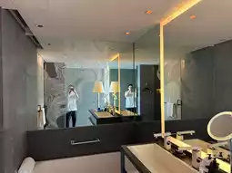 Instantly stunned when you open the door! The 270-degree floor-to-ceiling windows capture the entire Victoria Harbour skyline. Watch boats leisurely sail by during the day, chase the orange sea sunset at dusk, and lie back to enjoy the neon lights reflecting on the water at night~ The room design is insanely trendy, with fluorescent elements mixed with art installations, and even the bathroom mirror hides interactive surprises!