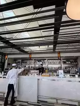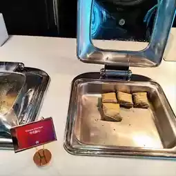 The hot food section kicked off a breakfast feast: the sticky rice chicken was wrapped in fragrant lotus leaves, with salted egg and chicken filling that was super hearty; the stir-fried rice noodles were moist and flavorful, perfectly paired with braised dishes like bean curd, carrots, and mushrooms. However, the bacon was a bit salty, and the hash browns were just average—I'd recommend heading straight for the Chinese dishes! The drinks section offered apple/orange juice and small bottled water, and I even spotted a gentleman mixing whiskey nearby—turns out there's a hidden bar for alcoholic beverages!
