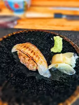 🍣 Anago (Sea Eel): The aroma of the seared fish skin is intoxicating.