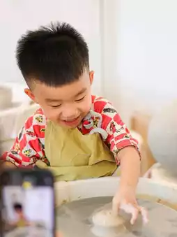 Zheng Zheng and Yue Yue went to try pottery wheel💕 At first, Zheng Zheng and Yue Yue were very resistant and afraid of getting dirty🙈 Teacher Rose was very kind and patient, constantly encouraging Zheng Zheng to try. Zheng Zheng quickly accepted it and got more and more excited as they played😂 Unexpectedly, Zheng Zheng followed the teacher’s instructions and did it quite skillfully🤣