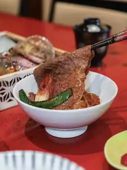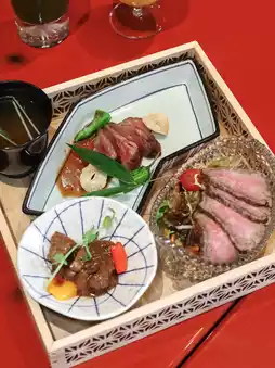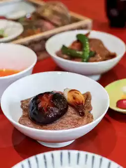 The three wagyu items are seared sirloin, thinly grilled shoulder, and slow-cooked loin, allowing you to taste different wagyu cuts at once❤️ The thinly grilled shoulder is served cold with a tangy salad, refreshing and appetizing✨ The seared sirloin is crispy on the outside and tender inside, bursting with rich beef aroma, while the slow-cooked loin is very tender and juicy👍🏻 The accompanying wagyu clear soup is flavorful and fragrant, rich but not greasy~