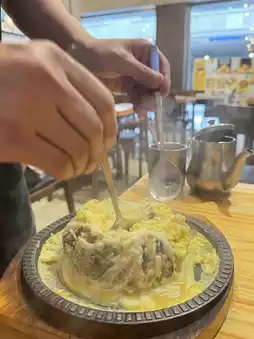 Their specialty #Chicken Egg Lava Fried Rice comes in different flavors. When served, the staff helps add the egg sauce and cheese, then stir-fries the rice right in front of you. The egg sauce melts into the fried rice, creating a smooth texture. The cheese pulls as you eat, and the chicken remains tender. The Korean-style seasoned fried rice is very flavorful when eaten hot.