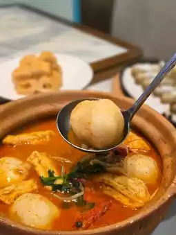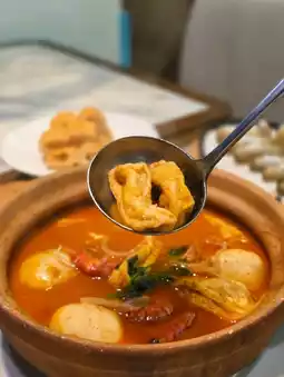 cooked into a rich seafood hotpot, mildly spicy, perfect with rice.