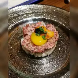 The restaurant specializes in premium wagyu dishes, and this time we tried their supreme wagyu set. This set includes three appetizers (taro tofu + simmered daikon and okra in broth + grilled abalone), three sashimi items (scallop + sea bream + toro), squid ink chawanmushi, wagyu tartare (the wagyu has an even color, topped with quail egg, sea urchin, caviar, and scallions, with diced pear at the bottom; combined with the wagyu in the middle layer, the texture is very rich 😻), sukiyaki (the meat is tender and juicy, and eating it with egg yolk really fills you with happiness 😎), truffle crab kamameshi (salmon roe can be added unlimitedly 🙈), maitake mushroom clear soup (light and refreshing, helps cut through the richness of the beef), and dessert (although the Mizuyoshin mochi is not my favorite, it looks really beautiful) 😍