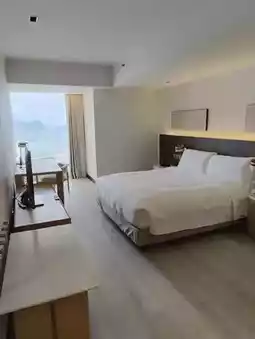 Hotel Nikko in Tsuen Wan West was originally planned to be the tallest building in Hong Kong, but due to its location under the flight path, the large building was ultimately divided into two towers of different heights. Rooms located above the 80th floor in the taller tower are the most premium in the hotel, offering unbeatable, expansive, and unique views overlooking Victoria Harbour and Hong Kong Island. Rooms facing the other tower also offer distant views of the Rambler Channel.