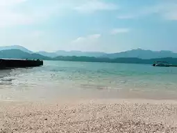 Finally, on the other side of Kiu Tsui Island, we experienced the delicate sandy beach and gently lapping waves up close. The distant mountain shadows and boats added a poetic touch to the journey.