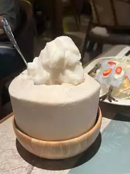 🥥 Young coconut smoothie ($78) Very refreshing and super icy; 🍍 Pineapple smoothie ($55) sweet and sour, very cooling, perfect for summer~