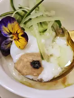 Chrysanthemum tofu with white miso soup🥣 was generously made👍. The chrysanthemum tofu⚪️ showcased the chef's knife skills🔪, the white miso was perfectly salty✅, combined with the fresh flavor of fish maw💫, truly top-notch🌟.