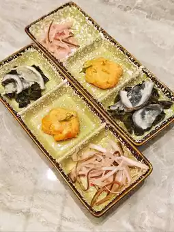 The appetizers included salmon tartare🐟, salmon head cartilage marinated with kelp🌊, and pickled tricolor onions🧅. The fresh flavors exploded💥, making it a perfect appetizer.