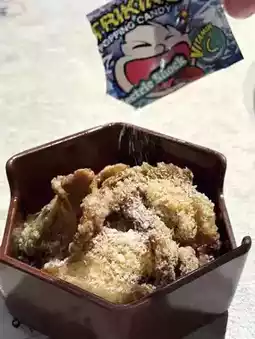 Pork fried to crispy perfection, sprinkled with shredded coconut and popping candy. The sweet and salty mix is fun, with the popping candy crackling on the tongue—quite enjoyable.